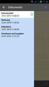 Standardmäßig ist das erste geöffnete Dokument der Notizzettel. Falls Sie ein neues Dokument erstellen möchten, wechseln Sie dafür in die Dokumentenliste (Symbol in der linken oberen Ecke). In der Dokumentenliste befinden sich alle gespeicherten Dokumente. Um ein neues Dokument zu erstellen, klicken Sie nun auf das „Plus“-Zeichen in der rechten oberen Ecke.