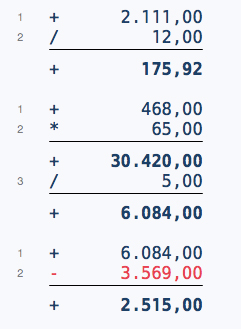 By giving the possibility to open other CalcTape files you are getting the option to use CalcTape files as a pattern. Companies and also private person can profit from this, if they often use the same calculation but with other values. The following example can demonstrate this: